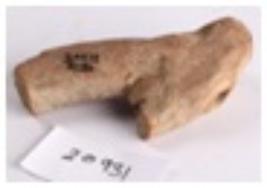 | Description / विवरण | Terracotta red coloure fragmentary plough with a hole and pointed working edge broken with well fired . |