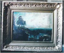 | Description / विवरण | Oil Painting on canvas depicting Landscape . Fitted in an ornamental wooden frame. |