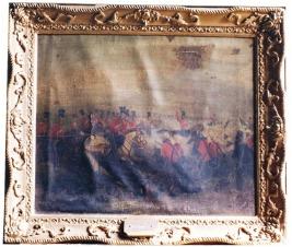 | Description / विवरण | Oil Painting on canvas depicting a war scene under the caption of Mysore War Fitted in an ornamental wooden frame. |