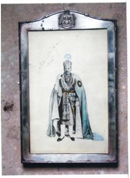 | Description / विवरण | Fuji finished photograph, portraying Nawab of Rampur in standing posture. Fitted in a metal encased wooden frame. |