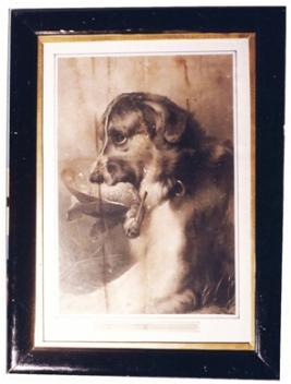 | Description / विवरण | Sketch painting on paper with the caption Retriver wood cock bird. Fitted in a wooden frame covered with glass pane. |