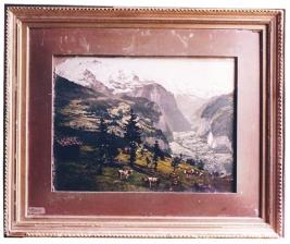 | Description / विवरण | Photograph depicting a landscape showing the snowfall on the mountain and also depicting few huts and several cattle s were grazing. Fitted in a wooden frame. |
