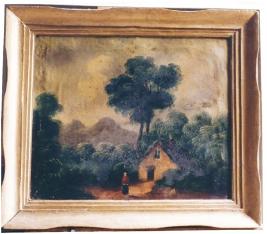 | Description / विवरण | Oil Painting on card board depicting a landscape, a lady in standing posture in front of a hut. Fitted in a wooden frame. |