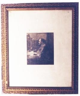 | Description / विवरण | Sketch of portraying Rudyard Kipling in sitting posture in his study room, holding a pen on his right hand and thinking something. Sir Philip Burn-Johns Bart, copyright by 1900 Mendoza limited. Fitted in an ornamental wooden frame with glass pane. |