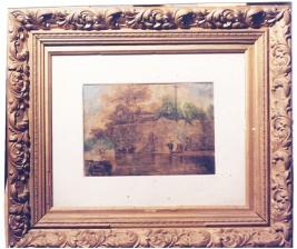 | Description / विवरण | Oil Painting on paper depicting a landscape scene. Fitted in an ornamental wooden frame. |