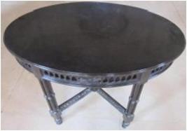 | Description / विवरण | Oval safe four legged decorative table, in the center each legs joints with four wooden stick. |