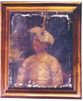 | Description / विवरण | Oil Painting on canvas portraying Nawab Feradun Jha in sitting posture on a red chair. Looking through the right side. |