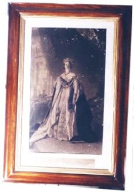 | Description / विवरण | Sketch painting on paper portraying a lady in standing posture in royal dress. Her left hand is hanging below. On her right side both the crown and royal staff lying on the table. It is entitle Her Most Gracious Majesty Queen Victoria . Fitted in a wooden frame covered with glass pane. |