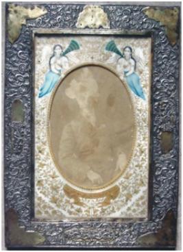 | Description / विवरण | Photograph of Nawab Bahadur Wasif Ali Mirza in standing posture, mountain with an oval shaped decorated ivory sheet within a glass paned wooden frame encased with decorated metal sheet. |