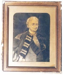 | Description / विवरण | Water colour painting on card board portraying Lord Clive. Most probably in standing posture on European dress. Printed by J.N. Roy. Fitted in a decorated wooden frame with glass pane. |