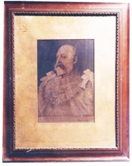 | Description / विवरण | Sketch painting on paper portraying showing a royal European King, below a signature perhaps Edward LD . Fitted within a glass wooden frame. |