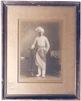 | Description / विवरण | Photograph of portraying Iskandar Ali Meerza in standing posture. Fitted in a wooden and glass frame. |