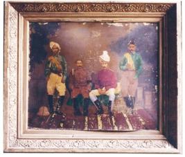 | Description / विवरण | Oil Painting on card board portraying Nawab Wasif Ali Meerza and another person were in sitting posture while another two person were standing posture. The three persons were holding polo stick in their right hand while Wasif Ali Meerza holding the stick both the hands. Fitted in a wooden frame with glass pane. |