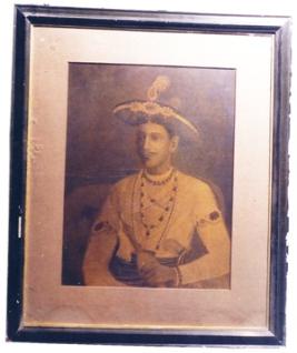 | Description / विवरण | Sketch painting on paper portraying of Nawab Mobarak-Ud-Dowlah in sitting posture, holding a dagger on his left hand and also seen one small knife fixed on his belt. Fitted in wooden frame and glass. |