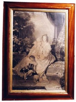 | Description / विवरण | Sketch portraying of Queen Mary in sitting posture, holding a doll which a baby girl was sitting just below her knee. Fixed wooden frame covered by glass. |