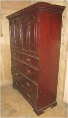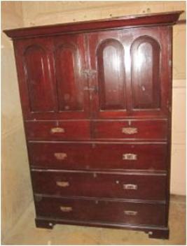| Description / विवरण | Wood almirah, having three big drawers & two small one be side the see are two other shelfs with these seprat doors. One shelves having two rakes. |