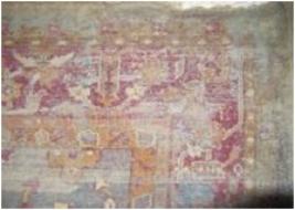 | Description / विवरण | Light blue colour carpet having red & Brown colour floral pattern on it. |