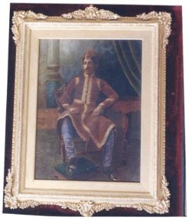 | Description / विवरण | Fuji finished photograph portraying Naseer Ali Mirza in sitting posture. Decorated wooden frame with golden colour with glass pane. |
