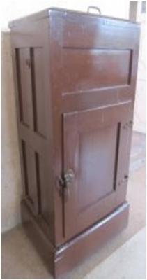 | Description / विवरण | Wooden cabinet with tin container for freezing purpose. |