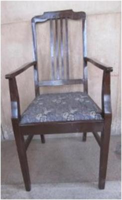 | Description / विवरण | Arm chair with cushion & straight raised back kept around the dining table |