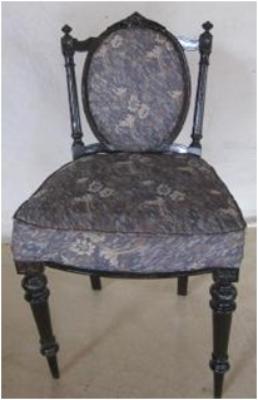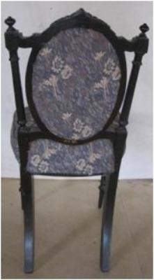 | Description / विवरण | Cushioned chair, without arm, circular cushion on raised back, front two legs one decorative where as back two are simple. |