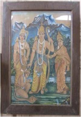| Description / विवरण | Painting depicts the lord Rama with Laxman, Sita & Hanuman. |