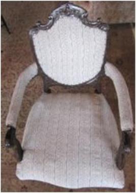 | Description / विवरण | Single seated sofa having cushion on its arm two front, two legs are carved like bird beak. |
