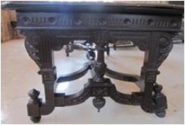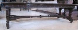 | Description / विवरण | Rectangular table having four decorative legs, each two legs are jointed to rest two by a wooden horizontal bar. |