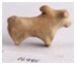| Description / विवरण | Terracotta elongated bull with dewlaps depicted by four joint legs, small neck with hump recovered from early level of KLB-1. |
