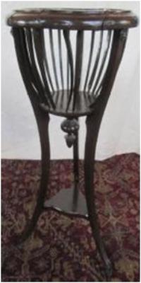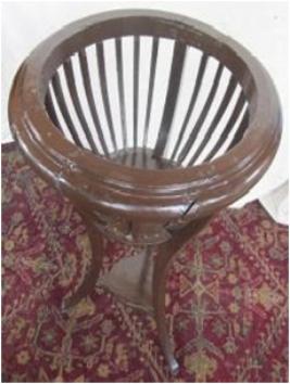 | Description / विवरण | Palm stand, having three legs & a wooden cage on its top to hold the metallic vase or flower pot. |