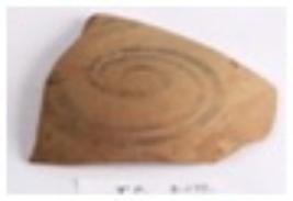 | Description / विवरण | Fabric A Red colored pot Shard made of fine levitated clay and turned on fast wheel and well fired with black colored slipped circle band like moustache type design. |
