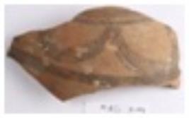 | Description / विवरण | Fabric A Red colored pot Shard made of fine levitated clay and turned on fast wheel and well fired with black colored slipped bands like leaf type design. |