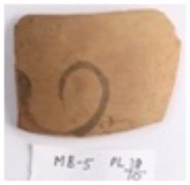 | Description / विवरण | Fabric A Red colored pot Shard made of fine levitated clay and turned on fast wheel and well fired with black colored moustache type design. |