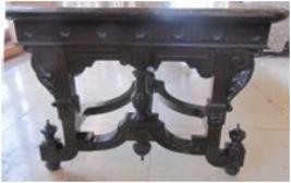 | Description / विवरण | Big rectangular table, having four decorative legs with a central horizontal wooden beam, which legs are jointed with each other. |