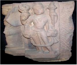 | Description / विवरण | Panel contains two sides, the front side depicts a standing four armed image, upper right hand holds a conch, the lower right hand holds an object which is not clear. The upper left hand is missing while the lower left hand holds a long club. The other side depicts a standing male figure, with four hands. The upper right hand holds a flower, the lower right hand holds the object which is not clear. The upper left hand holds a club, the lower left hand holds a flower bud like object |