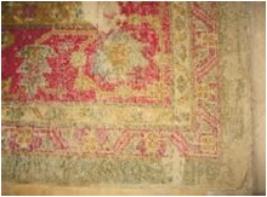 | Description / विवरण | Carpet having red colour border & red floral pattern on green colour base |