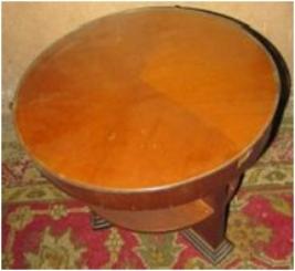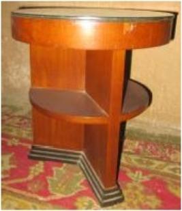 | Description / विवरण | Small rounded table with Glass cover top. Two tea reck. |