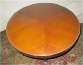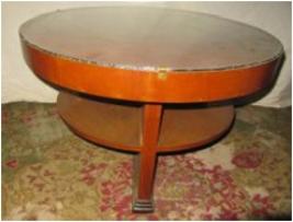 | Description / विवरण | Wooden centre table having circular for surface covered with glass two tea reck. |