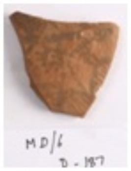 | Description / विवरण | Fabric A Red colored pot Shard made of fine levitated clay and turned on fast wheel and well fired with black colored multi type design. |