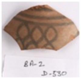 | Description / विवरण | Fabric A Red colored pot Shard made of fine levitated clay and turned on fast wheel and well fired with black colored bands and 8 type design. |