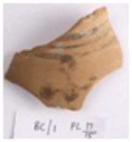 | Description / विवरण | Fabric A Red colored pot Shard made of fine levitated clay and turned on fast wheel and well fired with black colored bands. |