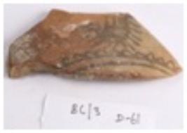 | Description / विवरण | Fabric A Red colored pot Shard made of fine levitated clay and turned on fast wheel and well fired with black colored circle lines painting. |