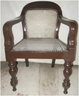 | Description / विवरण | Armed chair having net pattern sitting arrangement among four legs, front two are carved, where as back two are simple. |