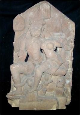 | Description / विवरण | Image of Uma-Mahesvara in Alingana mudra seated on Kailasa. Siva has four hands, Both right hand is not survived. The upper left hand holds a serpent and lower left hand touches the breast of Parvati. Head, left leg and both hands of Parvati are missing. Siva s head is partly damaged. Below the seat Nandi bull and simha are shown in between a male figure are also shown. To the left on bottom image of Ganesa in standing position. His tusk in chipped off. |