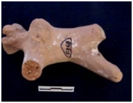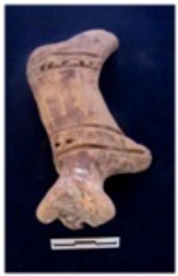 | Description / विवरण | Animal figurine is standing posture. Figurine having damaged face and remains of hole. There are two two grooved lines alongwith deep grooved dots are near the neck and above the tail. Both left legs are missing. Front right leg is partly damaged. Red wash found over the body. |