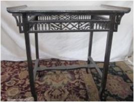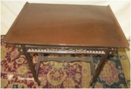 | Description / विवरण | Small wooden table having four straight legs but legs are moving out ward at its lower end. The surface of table is turned upward at its two sides. |