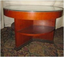 | Description / विवरण | Circular wooden table having glass on top. There is center circular rack in middle which has been divided in their parts. |