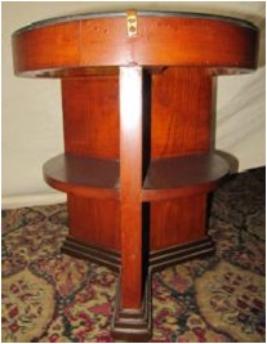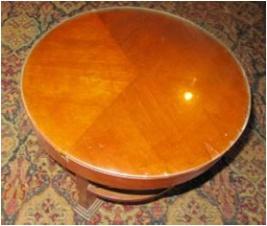 | Description / विवरण | Small wooden table having glass on its top & a circular rack in the middle which has been divided in three parts. |