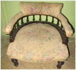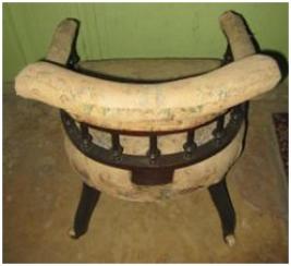 | Description / विवरण | Four wheeled single seated sofa having round shape back portion provided with cushion. |