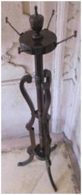 | Description / विवरण | Fancy three legged wooden cloth stand having a central wooden bar with four brass angles to hang the cloth. |